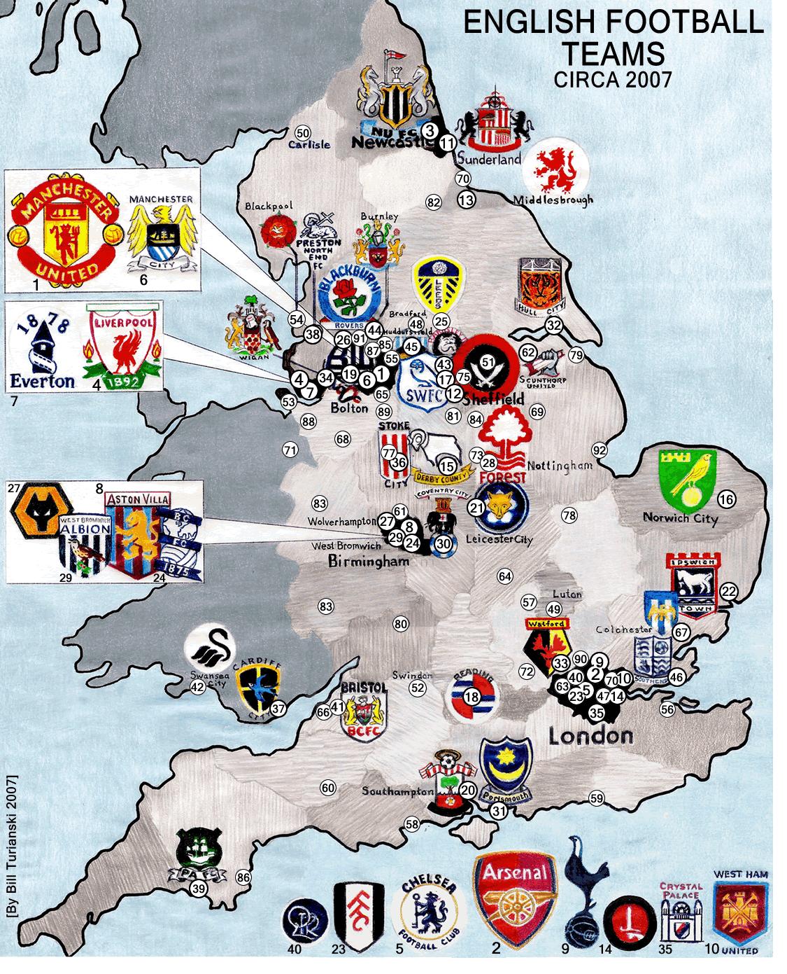 Reino UNIDO clubes de futebol do mapa. Reino UNIDO clube de futebol mapa (Norte da Europa - Europa) para imprimir. Reino UNIDO clube de futebol mapa (Norte da Europa - Europa) para download.